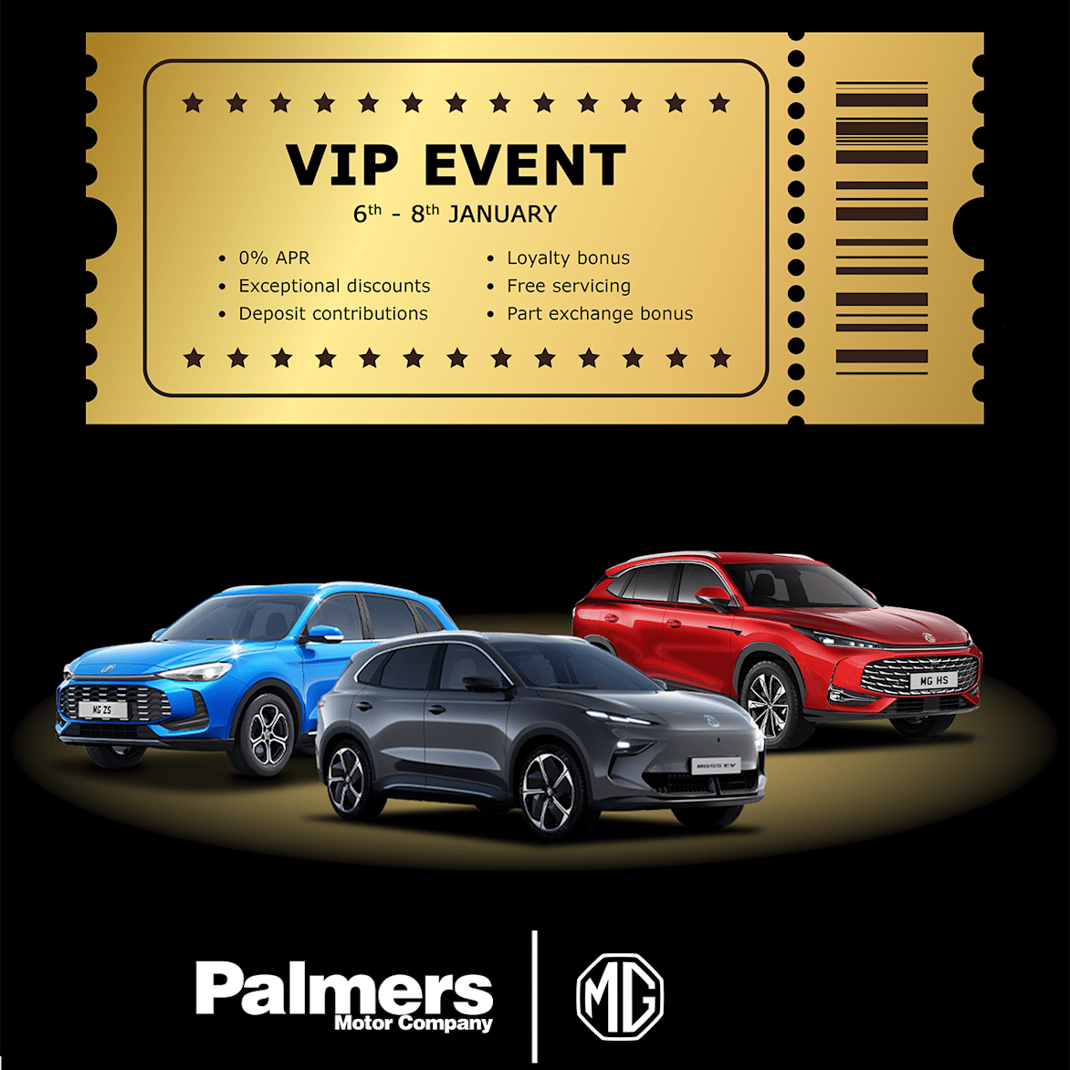 From February 6th - 8th Palmers is offering exlusive deals on its MG range, there is only a short time to seize this exclusive opportunity to upgrade your vehicle.